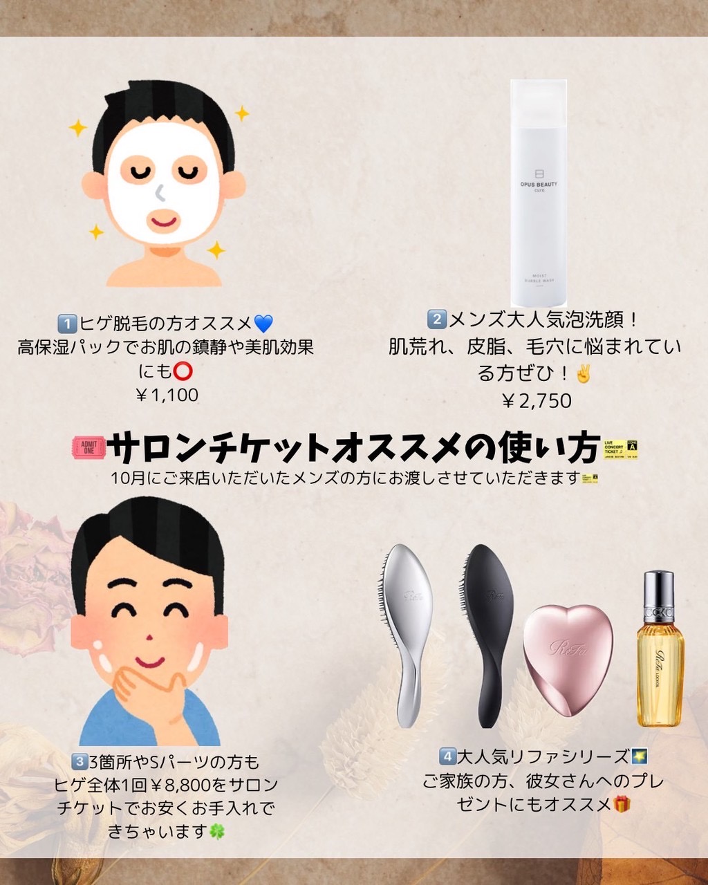 3️⃣ヒゲ脱毛3箇所コースor単発の方は、10月はヒゲ6箇所単発(¥8,800)をお得にお手入れできるチャンスです🉐